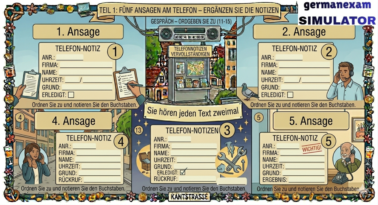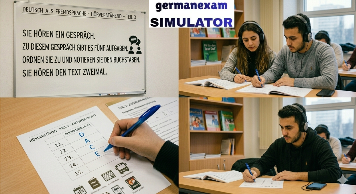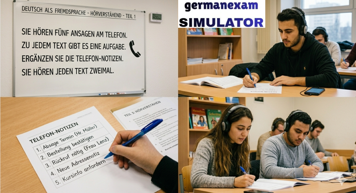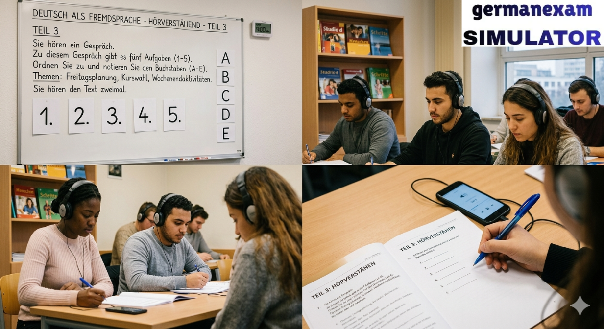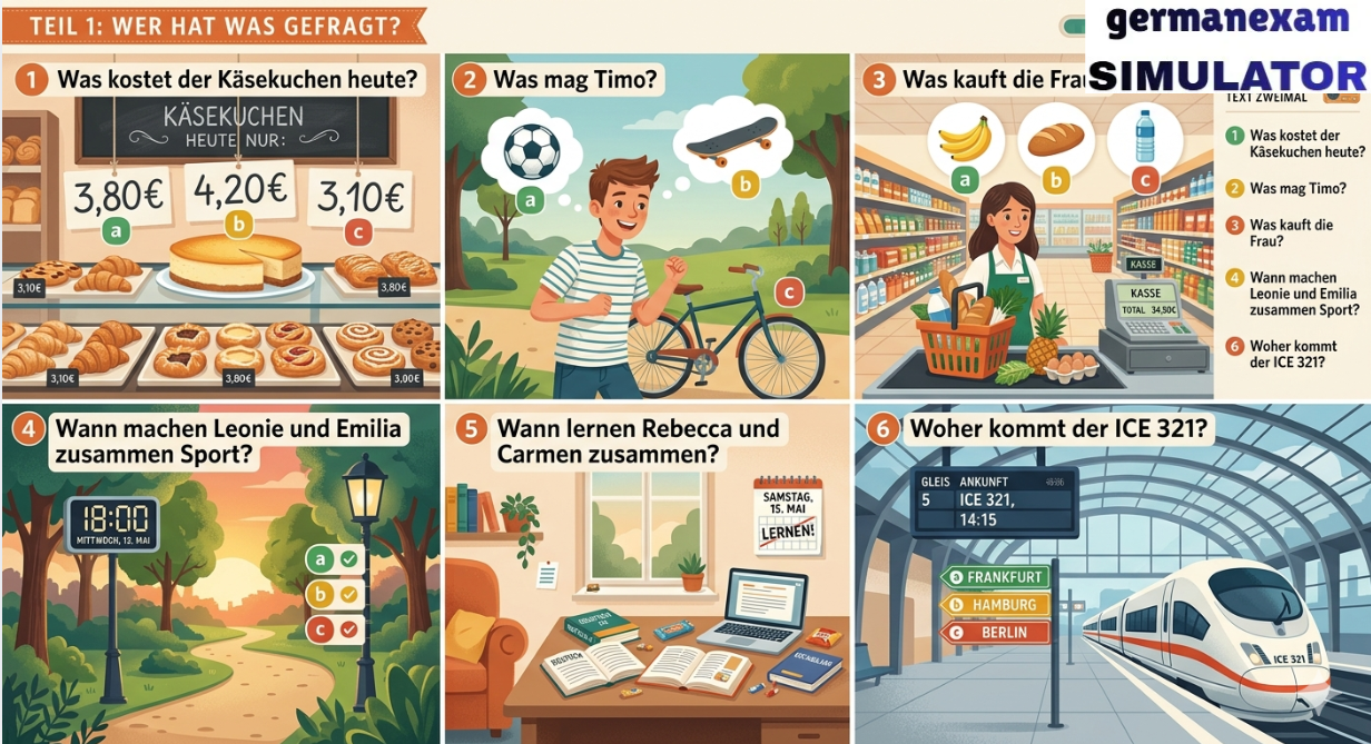 📚 Attempt Free Hören Test.. 👉 Download Free PDF Teil 1Was ist richtig?Kreuzen Sie an: a, b oder c.Sie hören jeden Text zweimal.[audio mp3="https://germanexamsimulator.com/wp-content/uploads/2026/02/telc-Deutsch-A2-Horen-Teil-1-2-und-3-Modellsatz-10-mit-Losung-am-Ende-2023-NEWbornSCHOOL.mp3"][/audio]1 Was kostet der Käsekuchen heute?2 Was mag Timo?3 Was kauft die Frau?4 Wann machen Leonie und Emilia zusammen Sport?5 Wann lernen Rebecca und Carmen zusammen?6 Woher kommt der ICE 321? 📚 Attempt Free Hören Test.. Prepare for German Exams Effectively Using German Exam Simulator.843900008684390000877055710004German Exam Simulation323 GMS Road, Near Ballupur Chowk, Dehradun, IndiaEmail: info@ieltsband7.com
