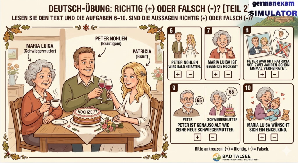 Lesen Sie den Text und die Aufgaben 6-10. Sind die Aussagen richtig (+) oder falsch (-)? Kreuzen Sie an.