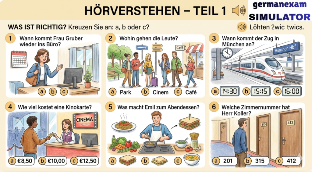 TELC A1 – Hören 11, Teil 1