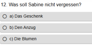 Was ist richtig? Kreuzen Sie an: a), b) oder c)