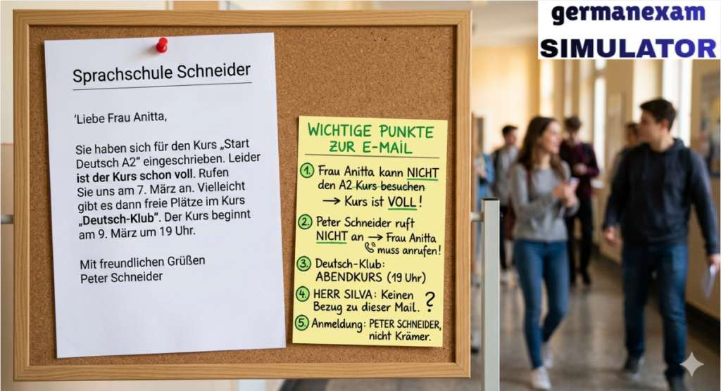 1. Frau Anitta kann den Kurs „Start Deutsch A2″ besuchen.