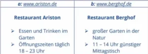 6 Sie möchten am Samstagmittag essen gehen und draußen sitzen.