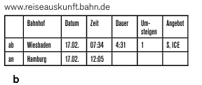 10. Sie sind in Wiesbaden und möchten mit dem Zug am Mittag in Hamburg sein. Wo finden Sie den richtigen Zug, bei Information a oder b?