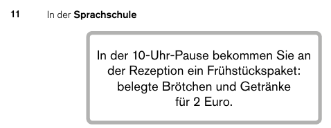 11. In der Sprachschule können Sie etwas zu essen kaufen.