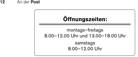 12. Es ist Samstagnachmittag. Sie können auf der Post Briefmarken kaufen.