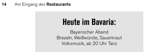 14. Heute Abend können Sie in diesem Restaurant tanzen.
