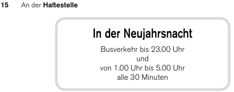 15. Von 23 Uhr bis 1 Uhr fährt kein Bus.