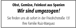 Obst bekommen Sie jetzt in der Friedrichstraße 13.